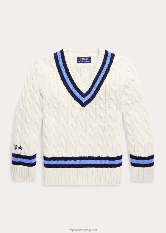 Početna| клинци| одећу| џемпери| клинци Ralph Lauren легендарни џемпер за крикет V2V445665 крем са морнарском траком