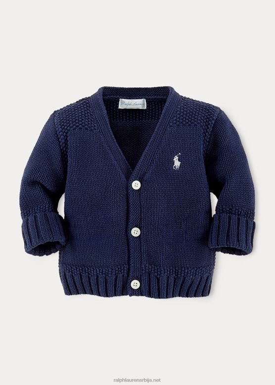беба Ralph Lauren памучни кардиган с в-изрезом V2V447993 префињена морнарица