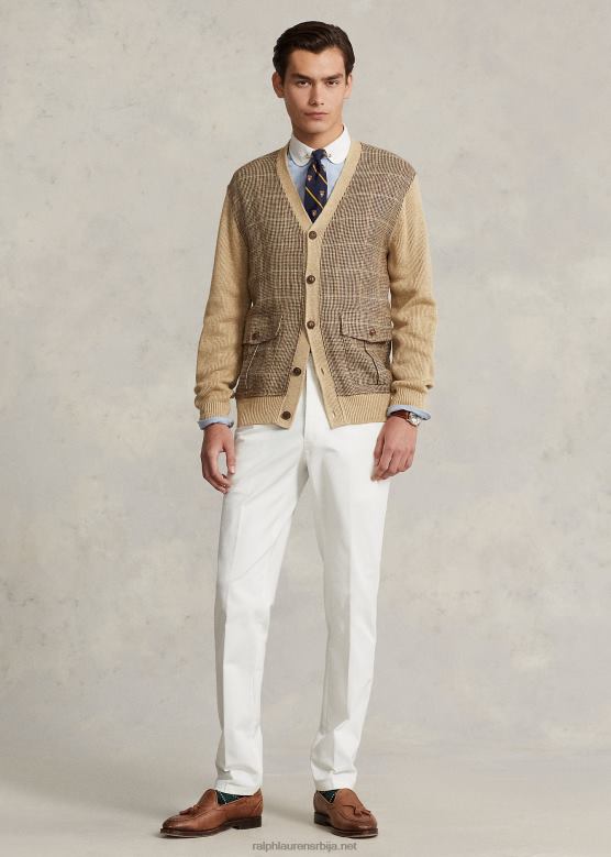 мушкарци Ralph Lauren глен кардиган са панелима од лана и свиле V2V44147 тан мулти
