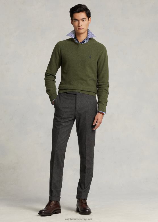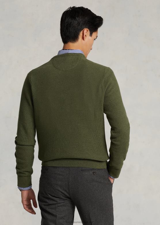 мушкарци Ralph Lauren мрежасти памучни џемпер са округлим изрезом V2V44669 класични маслинов хеатхер