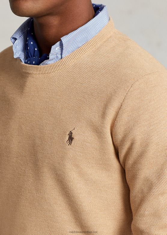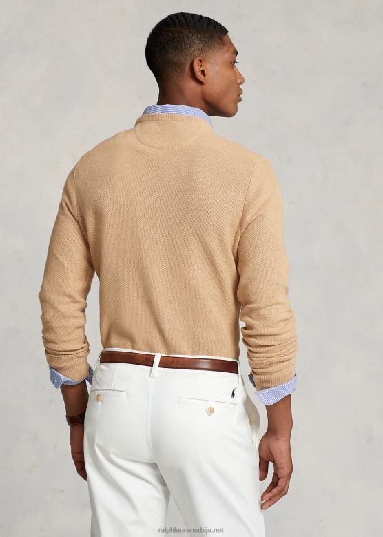 мушкарци Ralph Lauren мрежасти памучни џемпер са округлим изрезом V2V44673 камил меланж