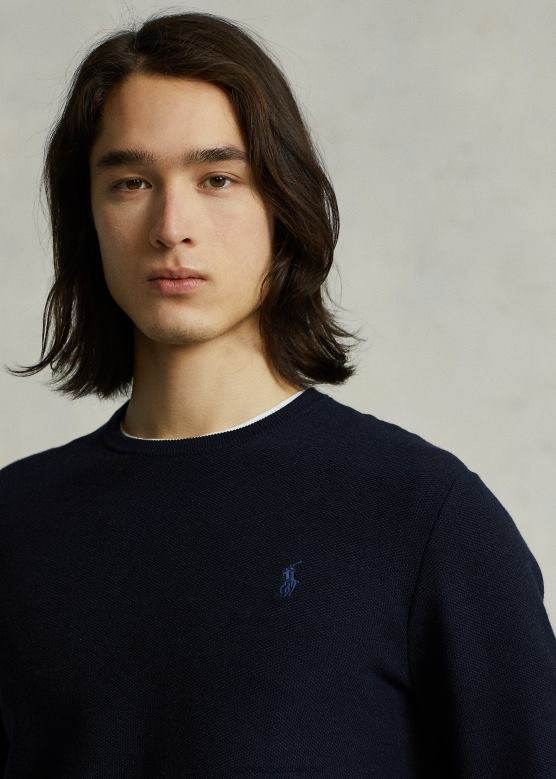 мушкарци Ralph Lauren мрежасти памучни џемпер са округлим изрезом V2V448592 морнарски хеатхер