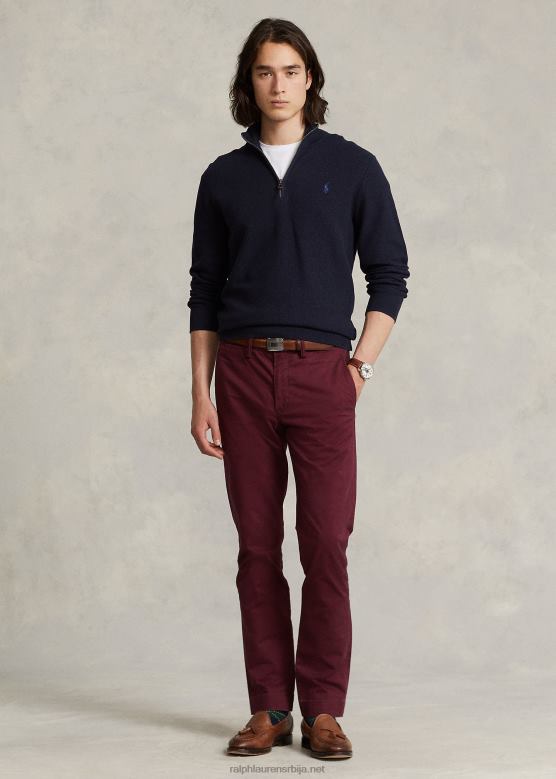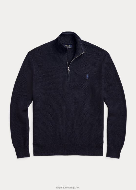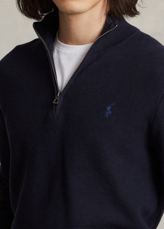 мушкарци Ralph Lauren мрежасто плетени памучни џемпер са четвртим патентним затварачем V2V44509 морнарски хеатхер