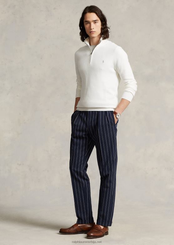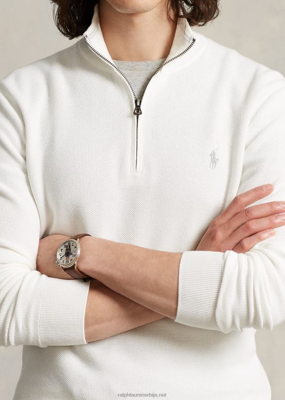 мушкарци Ralph Lauren мрежасто плетени памучни џемпер са четвртим патентним затварачем V2V44511 палуба бела