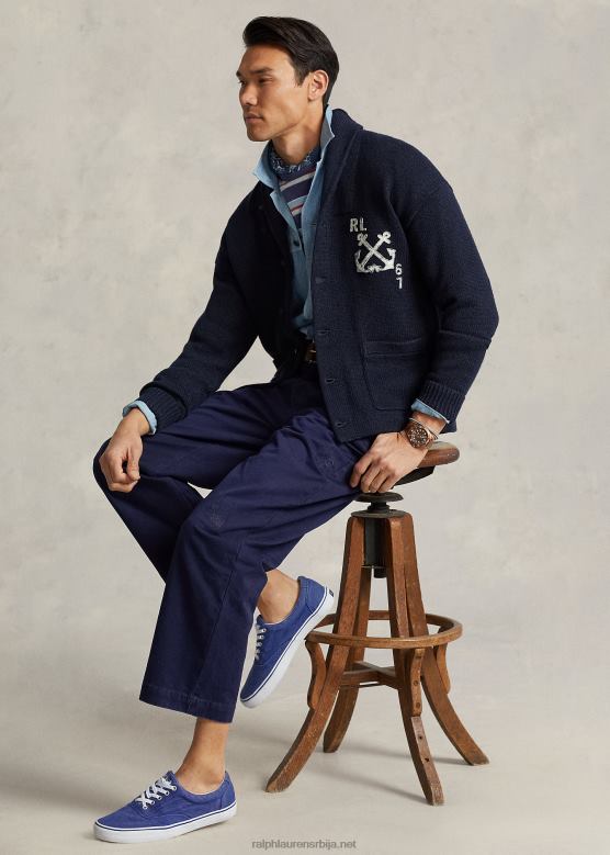 мушкарци Ralph Lauren наутички памучно-ланени шал кардиган V2V441255 морнарица