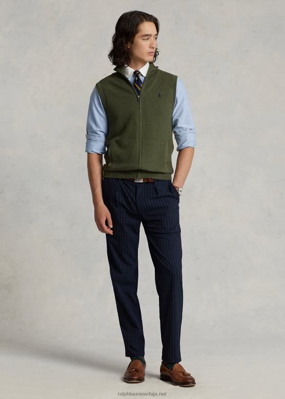 мушкарци Ralph Lauren памучни џемпер са пуним патентним затварачем V2V44781 класични маслинов хеатхер