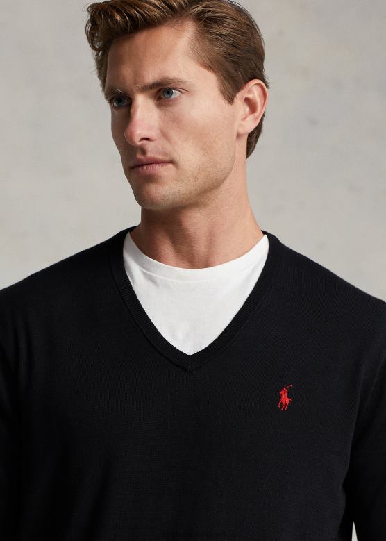 мушкарци Ralph Lauren памучни џемпер с в-изрезом V2V448567 црн