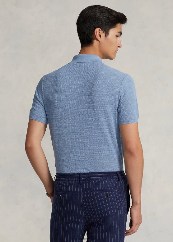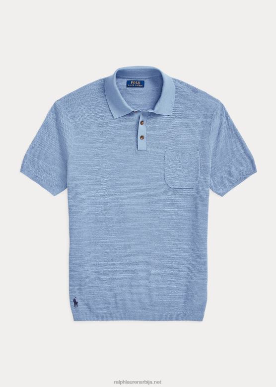 мушкарци Ralph Lauren памучно-ланени џемпер са поло овратником V2V44405 канал плави