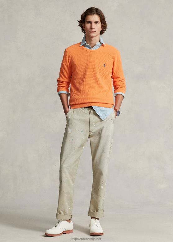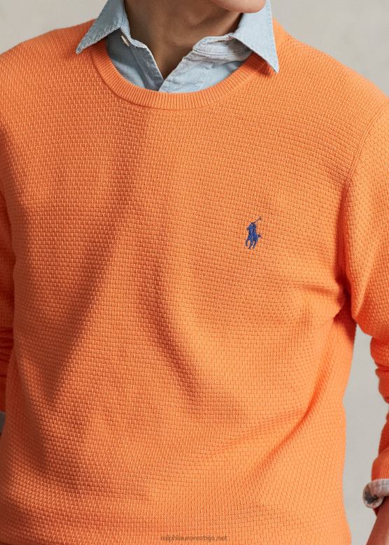 мушкарци Ralph Lauren текстурирани памучни џемпер са округлим изрезом V2V44644 класична бресква хеатхер