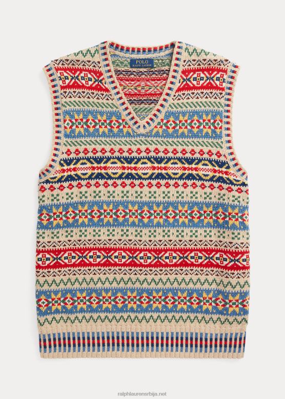 мушкарци Ralph Lauren Фаир исле памучно-ланени џемпер прслук V2V448464 тан мулти