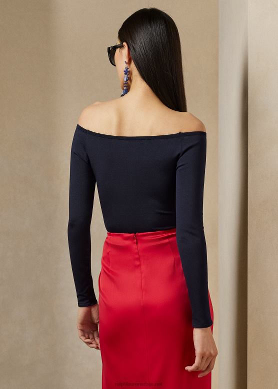 Жене Ralph Lauren дукс свилени џемпер са отвореним раменима V2V443472 лук морнарица