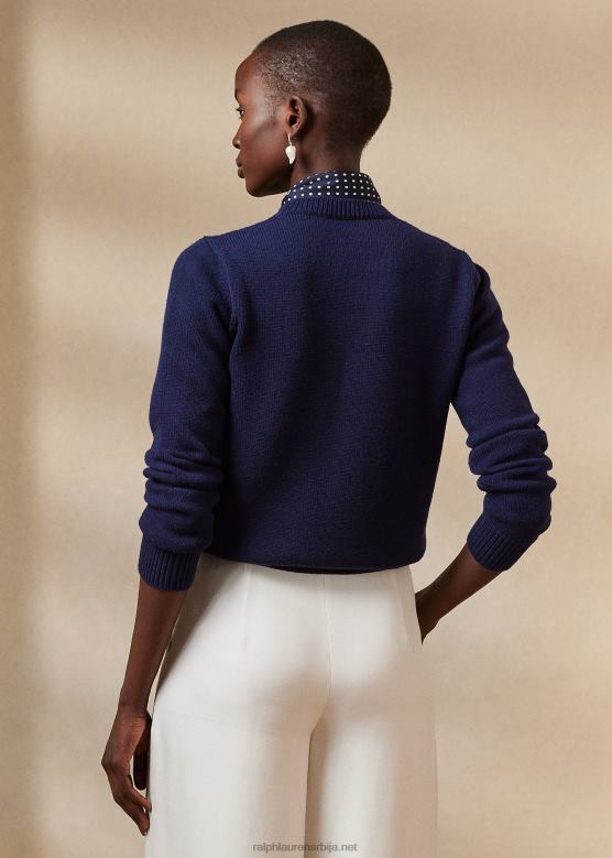 Жене Ralph Lauren интарзија-плетени рл мерино-свилени џемпер V2V443474 лук тамноплава/лук крема