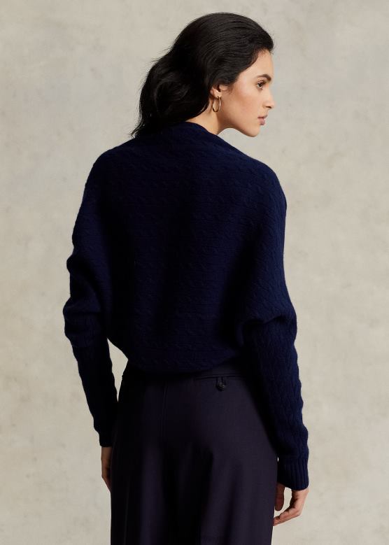 Жене Ralph Lauren кабловска плетена вуна-кашмир слегање раменима V2V443103 морнарица