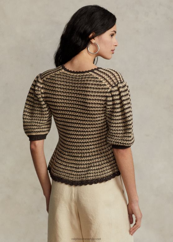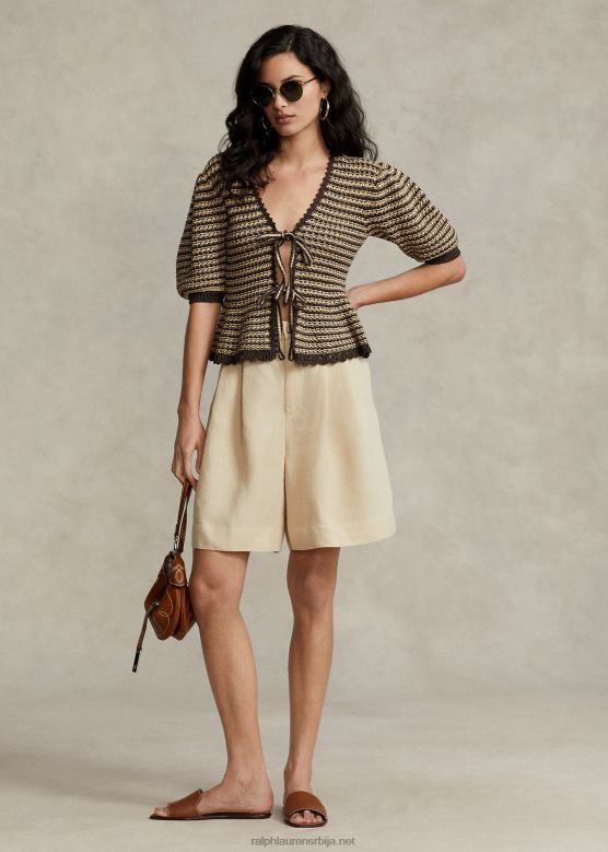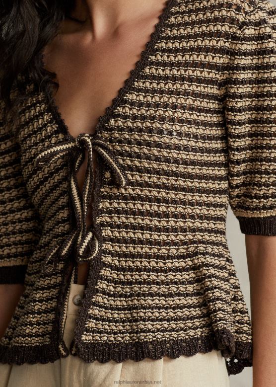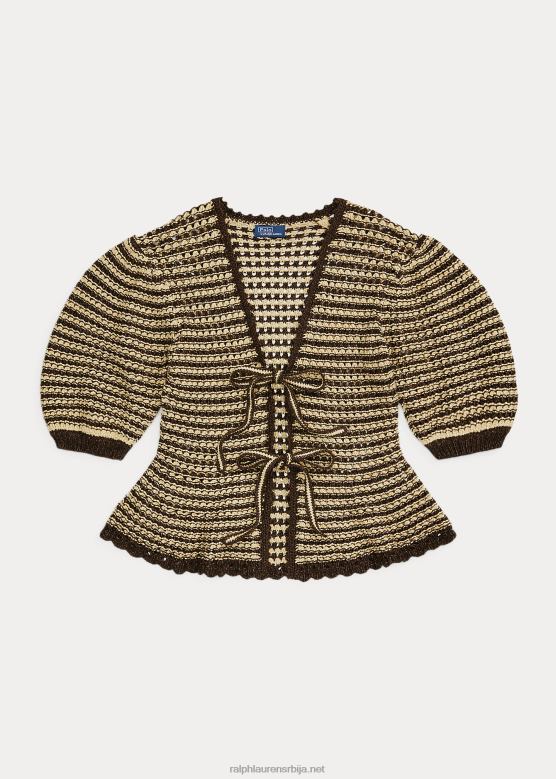 Жене Ralph Lauren кардиган кратких рукава од мешавине памука V2V442974 тамноцрвена/чоколадна пруга