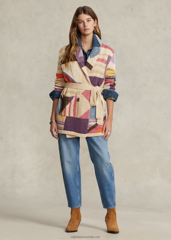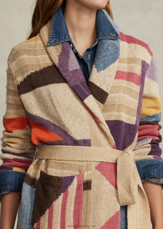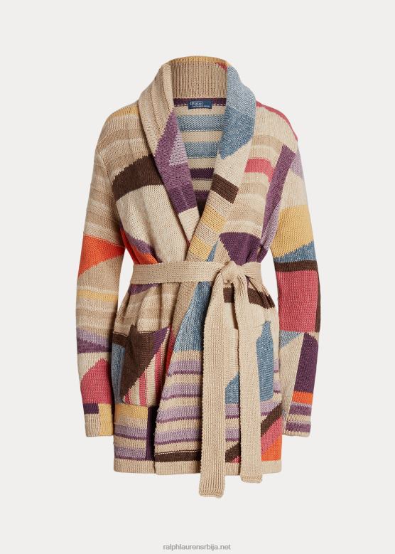 Početna| Жене| одећу| џемпери| Жене Ralph Lauren кардиган од мешавине лана са шалом са гео мотивом V2V443227 тан мулти