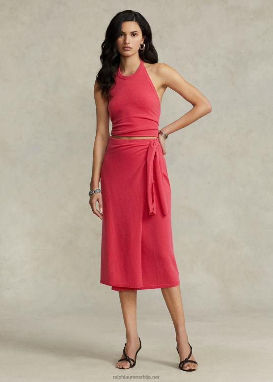 Жене Ralph Lauren ошишан халтер од мешавине кашмира V2V442944 залазак сунца црвен