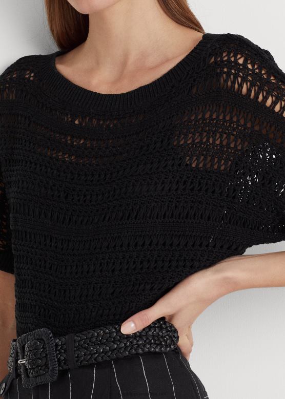 Жене Ralph Lauren памучни мрежасти џемпер кратких рукава V2V444332 црн