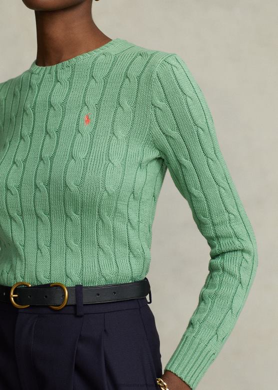 Жене Ralph Lauren плетени памучни џемпер са округлим изрезом V2V449088 залеђе зелено