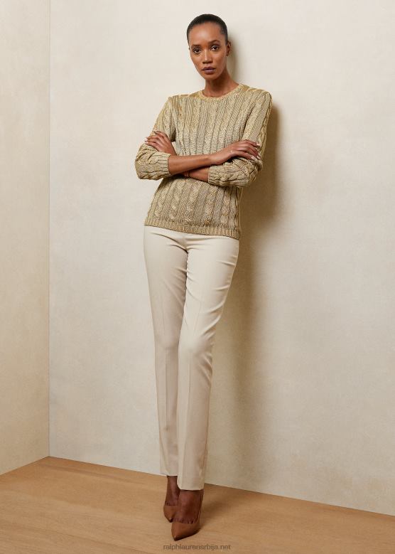 Жене Ralph Lauren плетени свилени џемпер са округлим изрезом V2V443486 песак