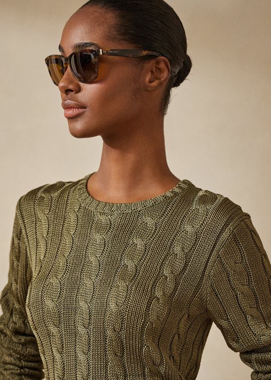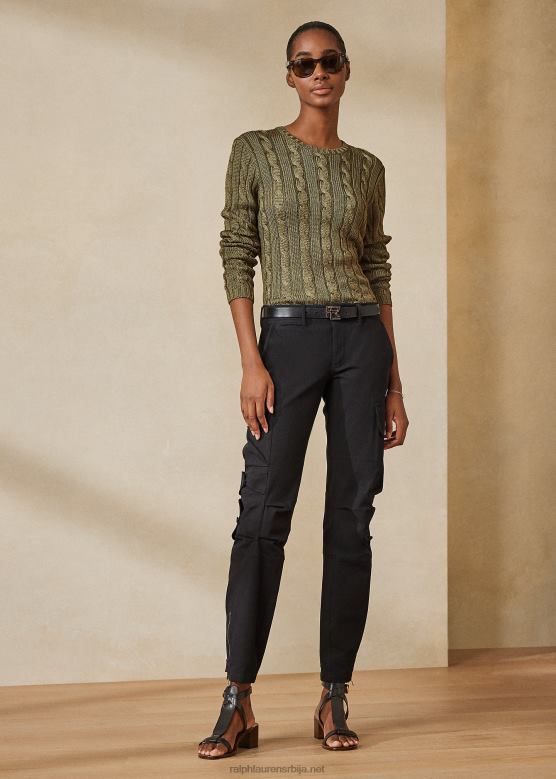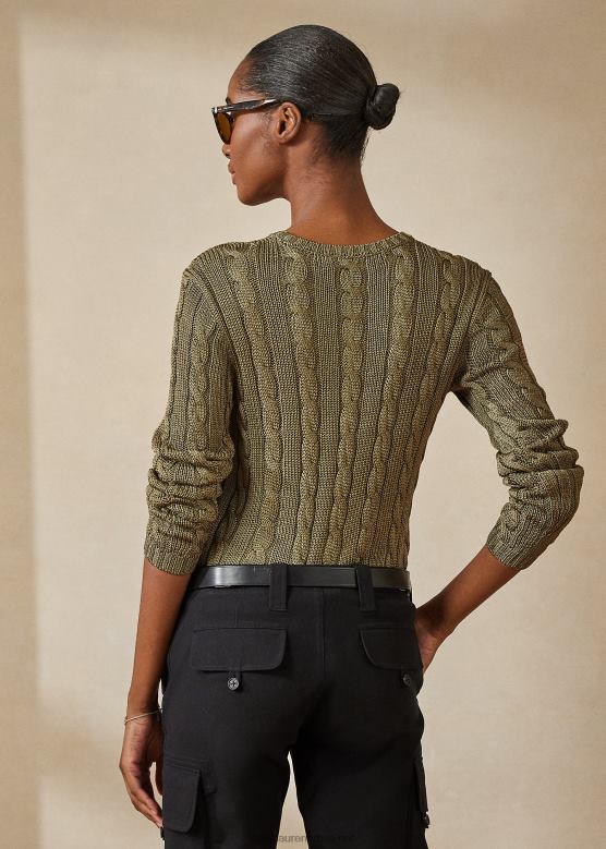 Жене Ralph Lauren плетени свилени џемпер са округлим изрезом V2V443487 лишајева зелена