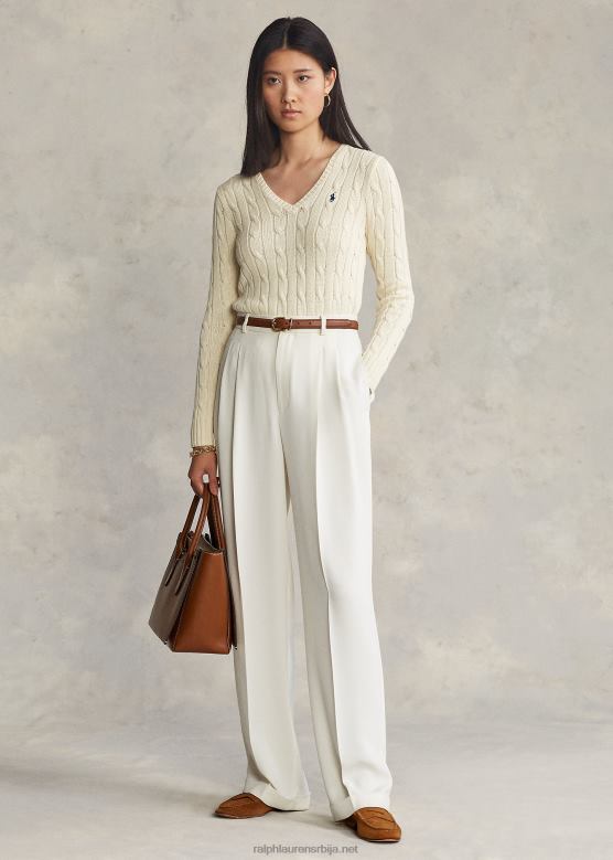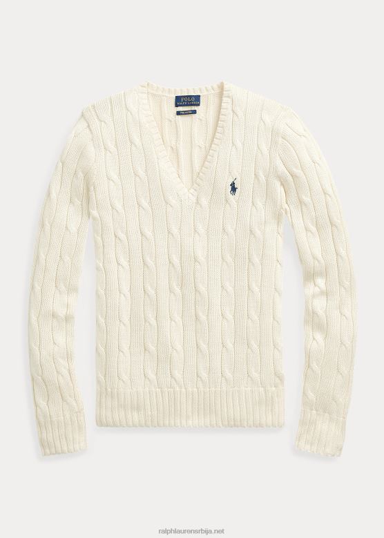 Жене Ralph Lauren плетени џемпер са в-изрезом V2V443337 крем