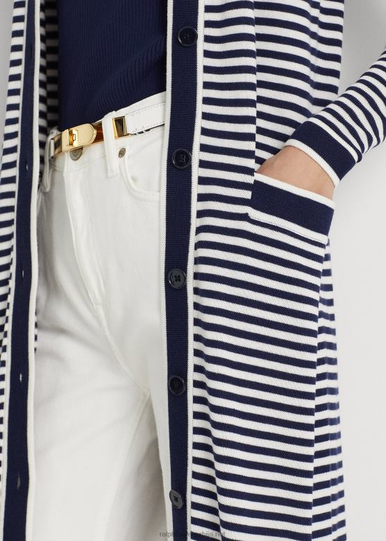 Жене Ralph Lauren пругасти дуги кардиган од мешавине свиле V2V444887 префињена морнарско/бела