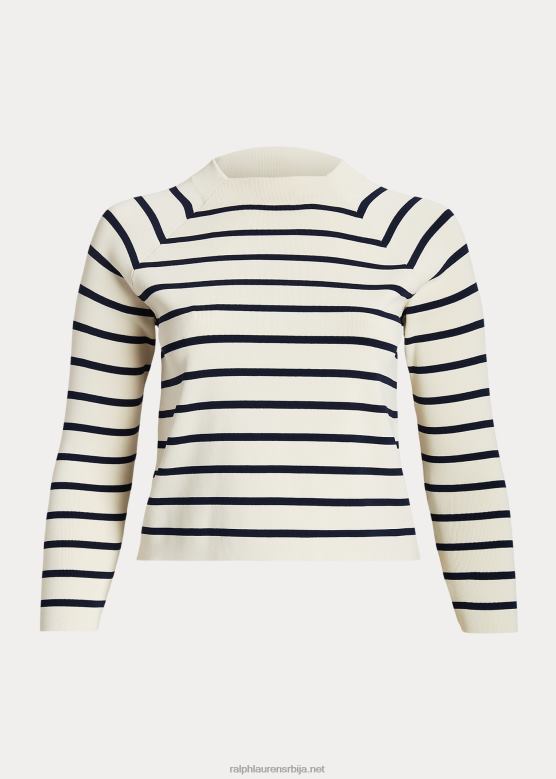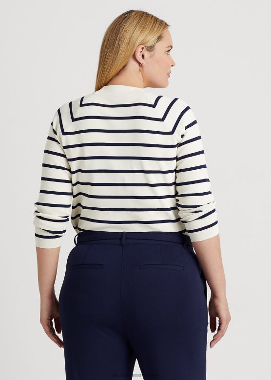 Жене Ralph Lauren пругасти скраћени џемпер са изрезом V2V444621 маскарпоне крем/плава
