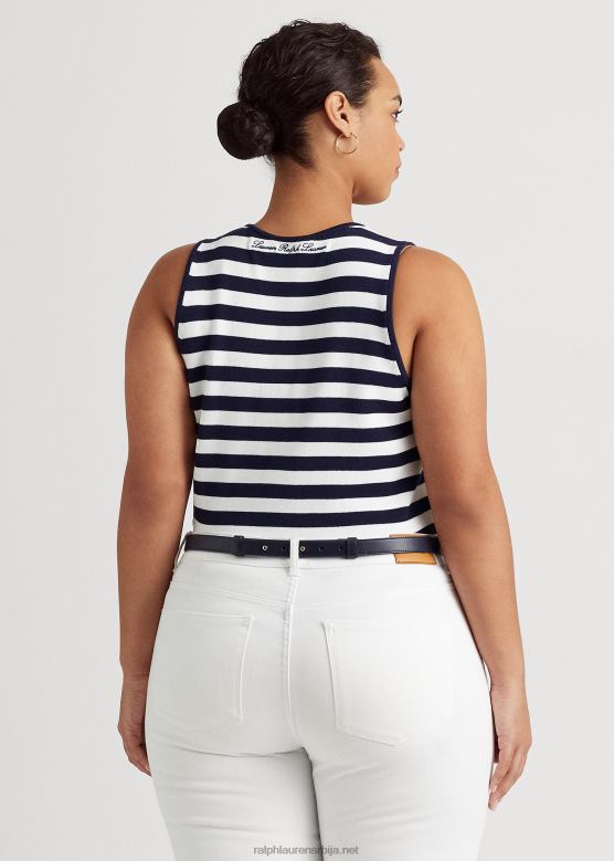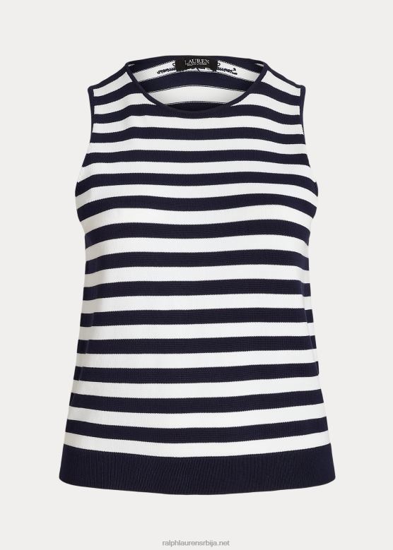Жене Ralph Lauren пругасти џемпер без рукава од мешавине памука V2V444785 префињена морнарско/бела
