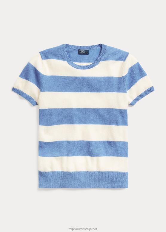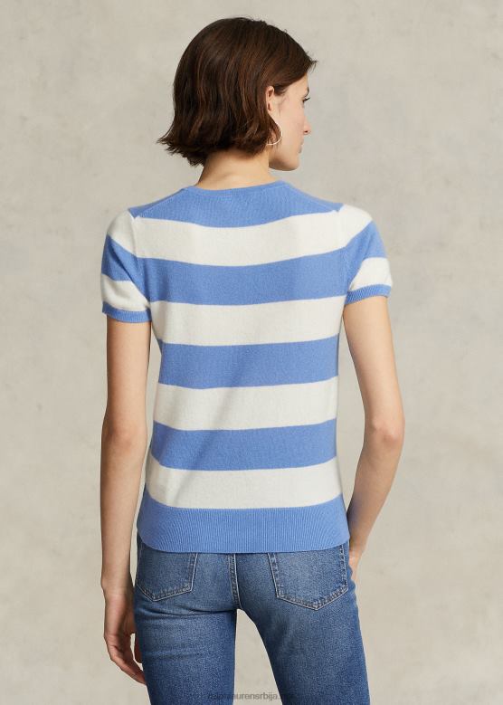 Жене Ralph Lauren пругасти џемпер кратких рукава од кашмира V2V443043 крем / лучко острво плаво