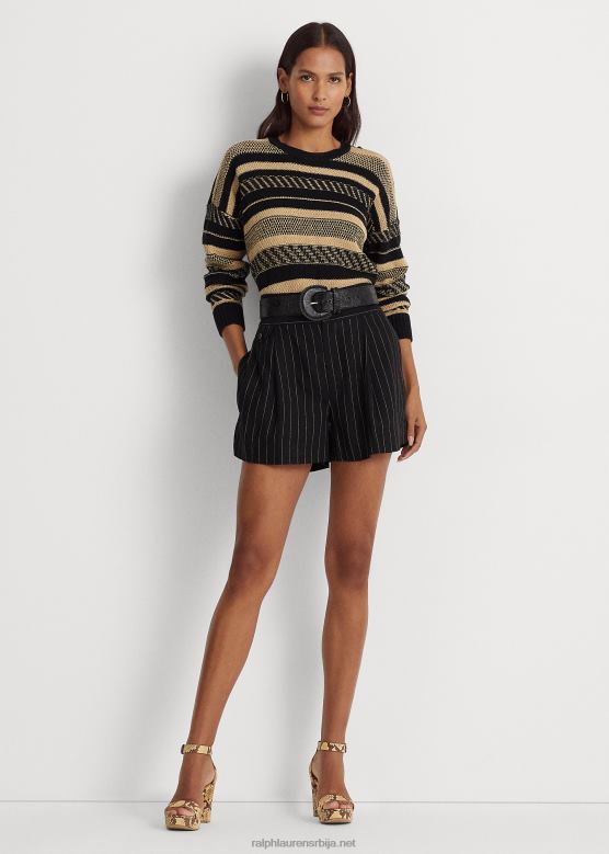 Жене Ralph Lauren пругасти џемпер од мешавине лана V2V449515 црна/тан