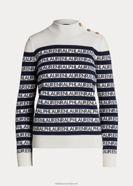Жене Ralph Lauren пругасти џемпер од мешавине памука V2V444901 бела/префињена морнарица