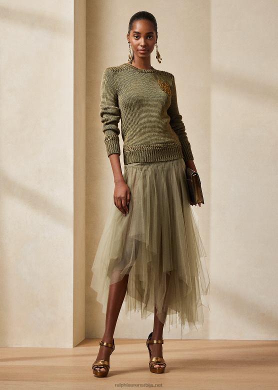 Жене Ralph Lauren украшени свилени џемпер са округлим изрезом V2V449298 лишајева зелена